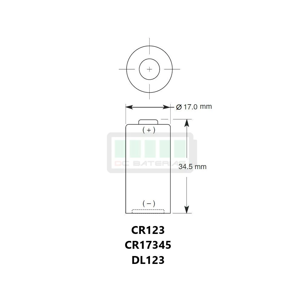 Baterias compatíveis: 123, 123A, CR123A, CR17345, CR17335, DL123A, SF123A