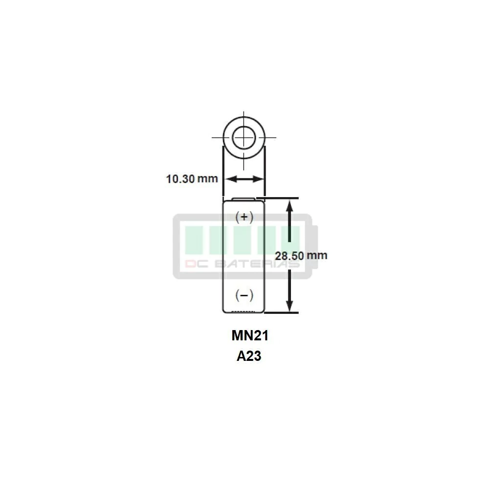 Baterias compatíveis: MN21, A23, 23A, V23GA, 3LR50, 23AE, L1028, 8LR23, LRV08, LR23A, A23S